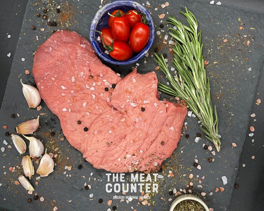 Dutch Milk Fed Veal Escalope flattened and coated with panko breadcrumbs, also known as Schnitzel.